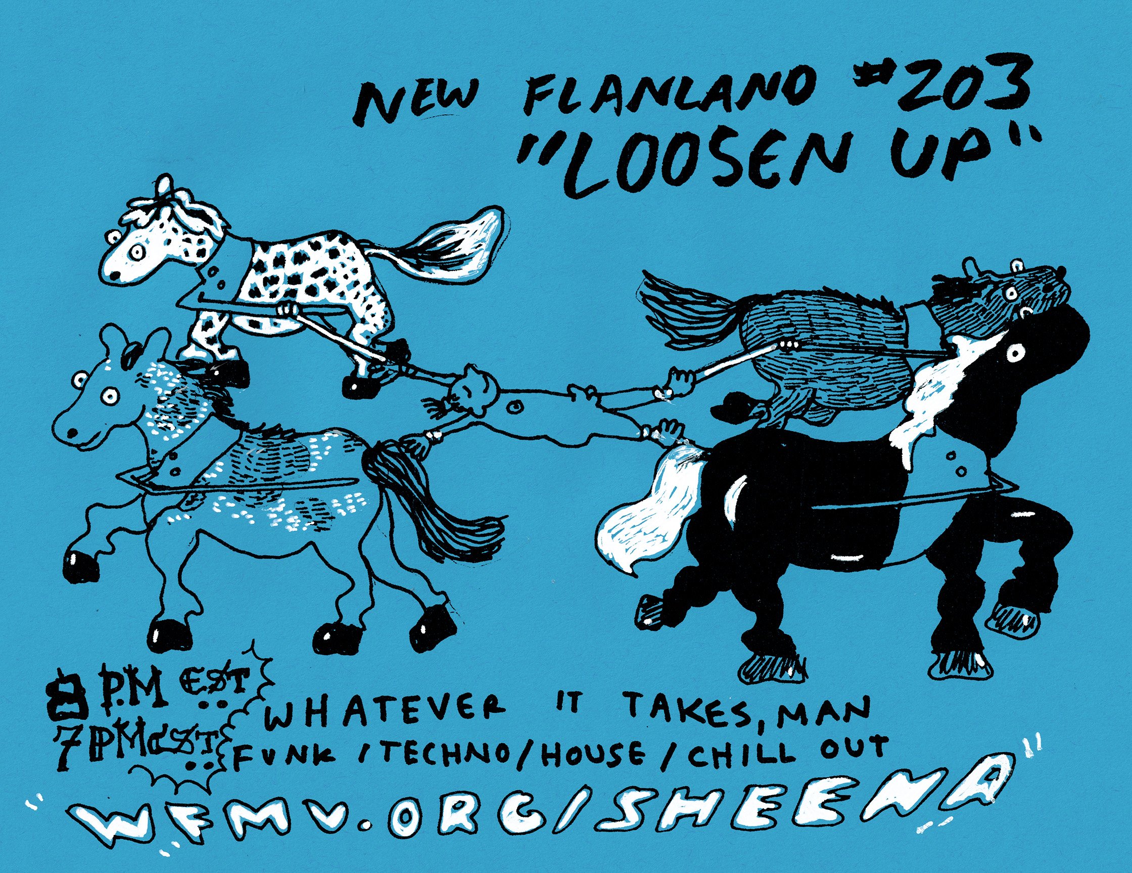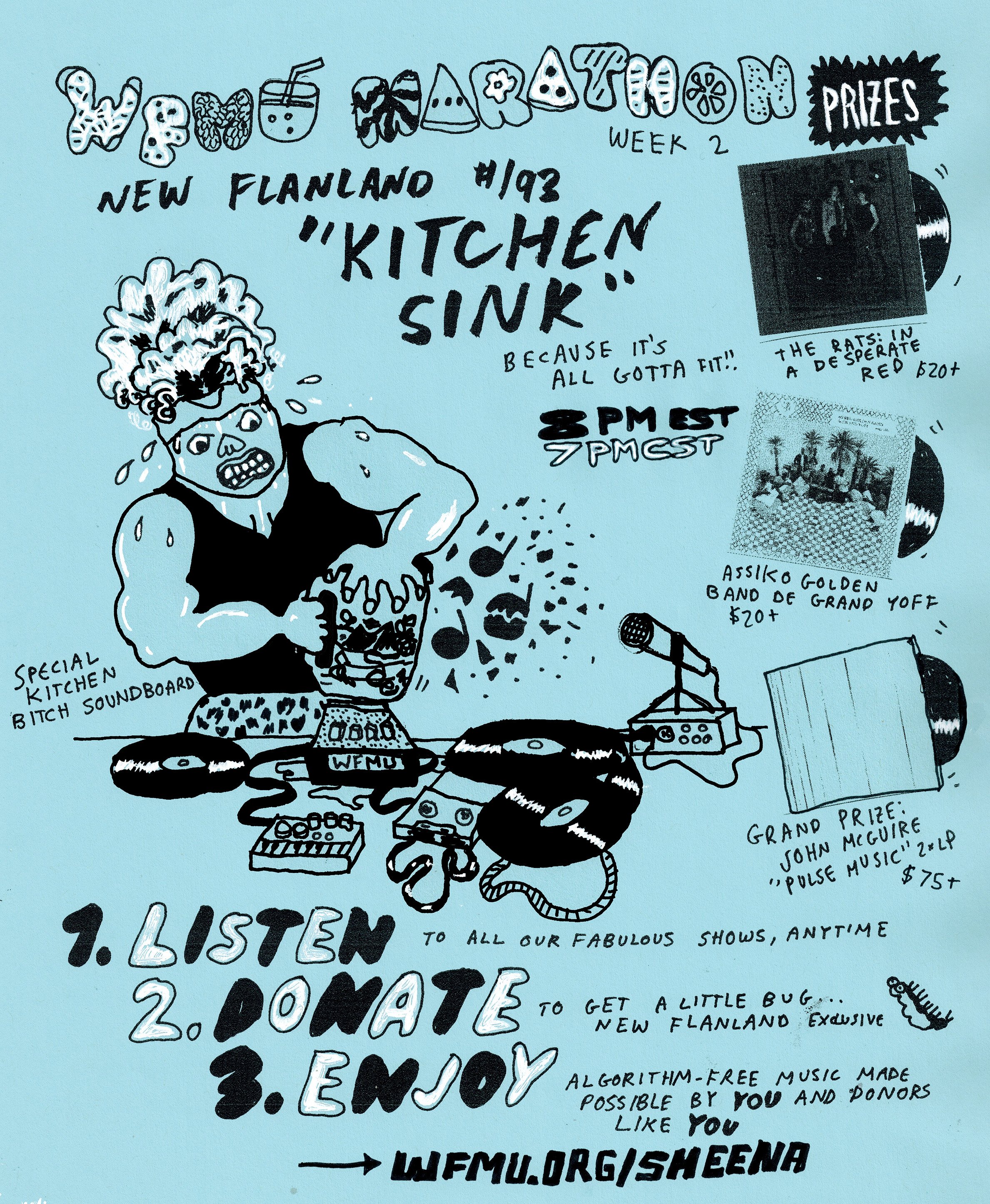 Some color variations occur (I sometimes adjust the hue to match the mood.) Original art includes weird marginalia, me testing out pens, false starts, and other ephemera. Own a piece of rock ‘n’ roll history! Archives organized by date available at wfmu.org/playlists/ne